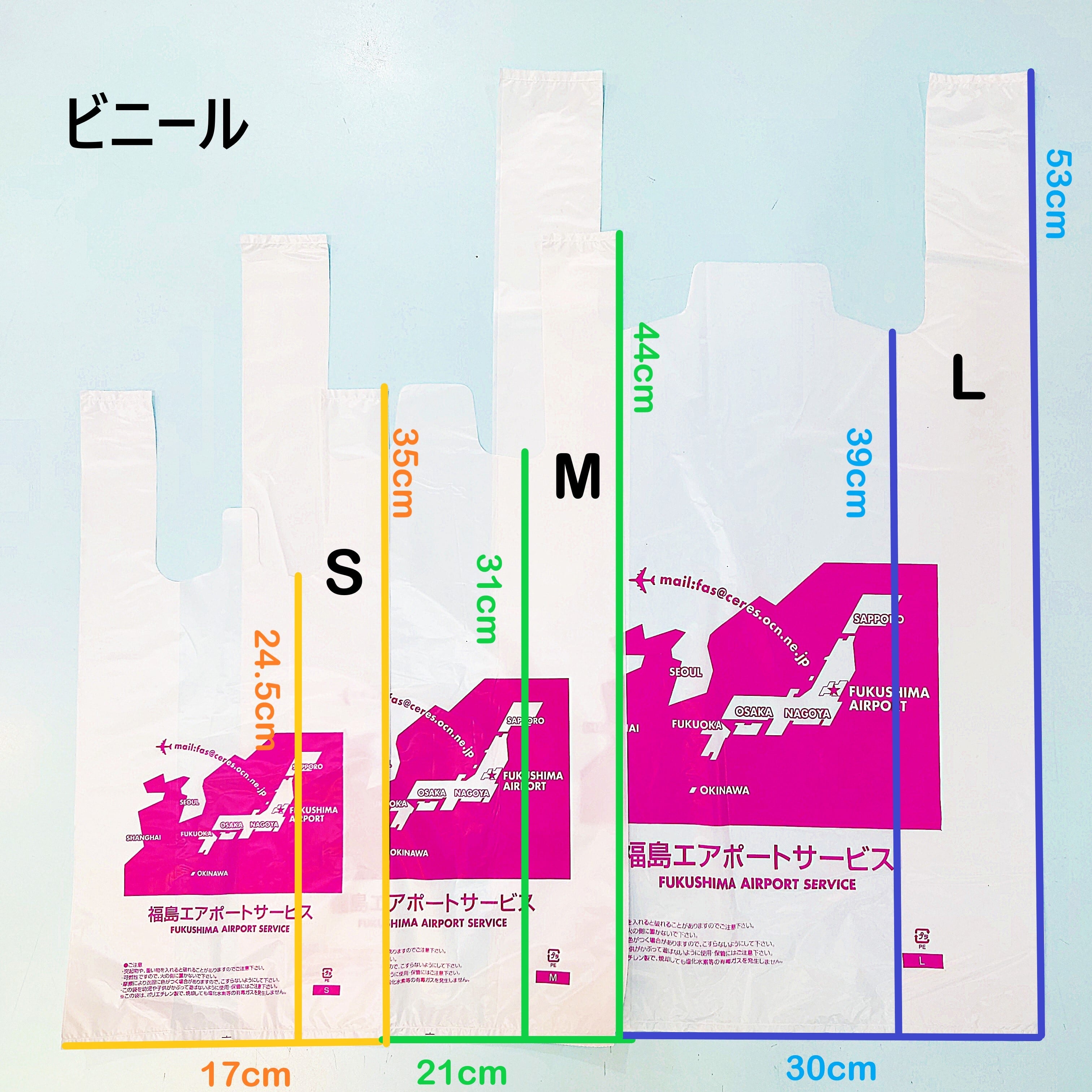 袋サイズ:Sビニール・・・2~3個 / Mビニール・・・約5~6個 / Lビニール・・・約8~10個