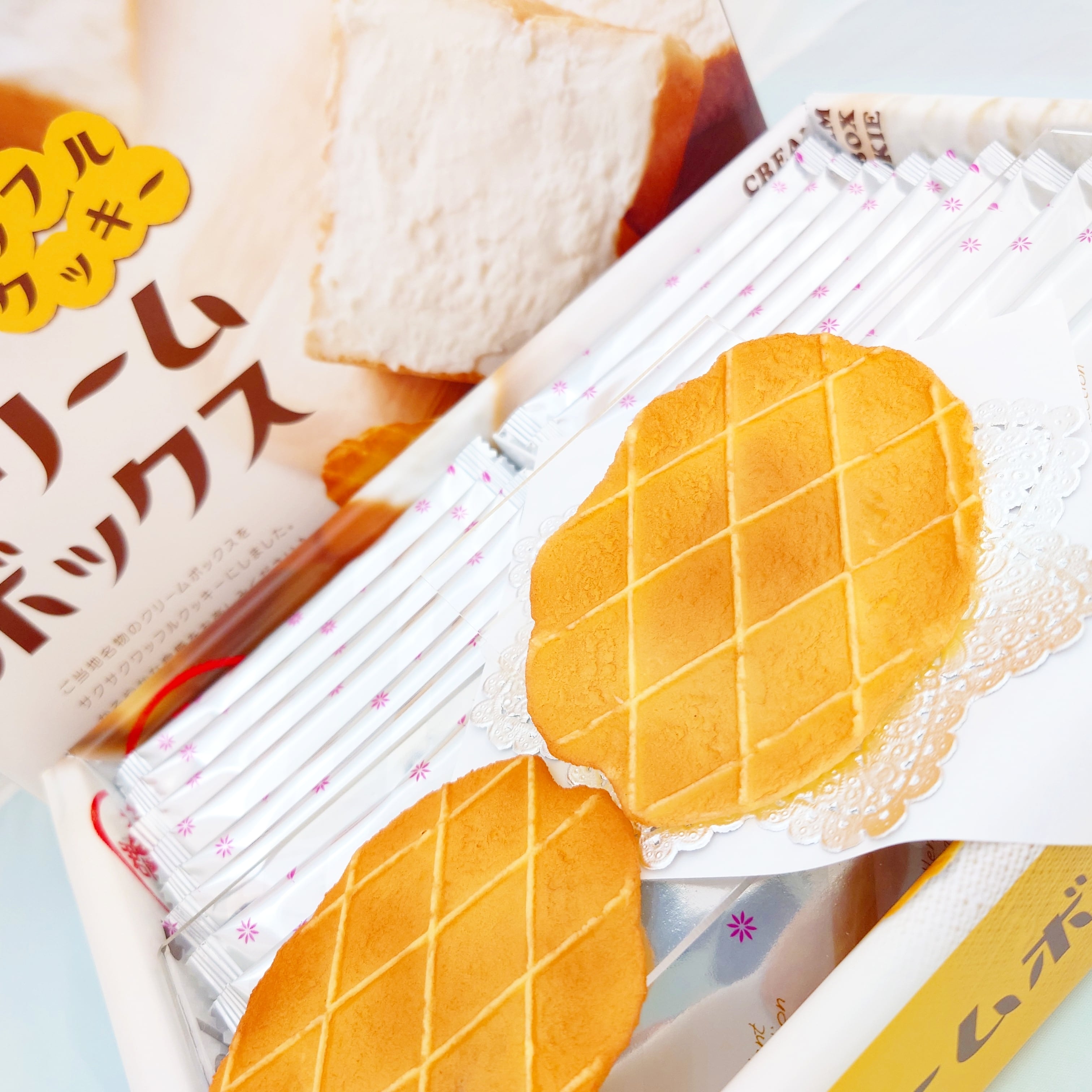 サクサクと香ばしさもありながら、クリームボックスならではのまろやかさも感じるワッフルクッキーに仕上がりました。