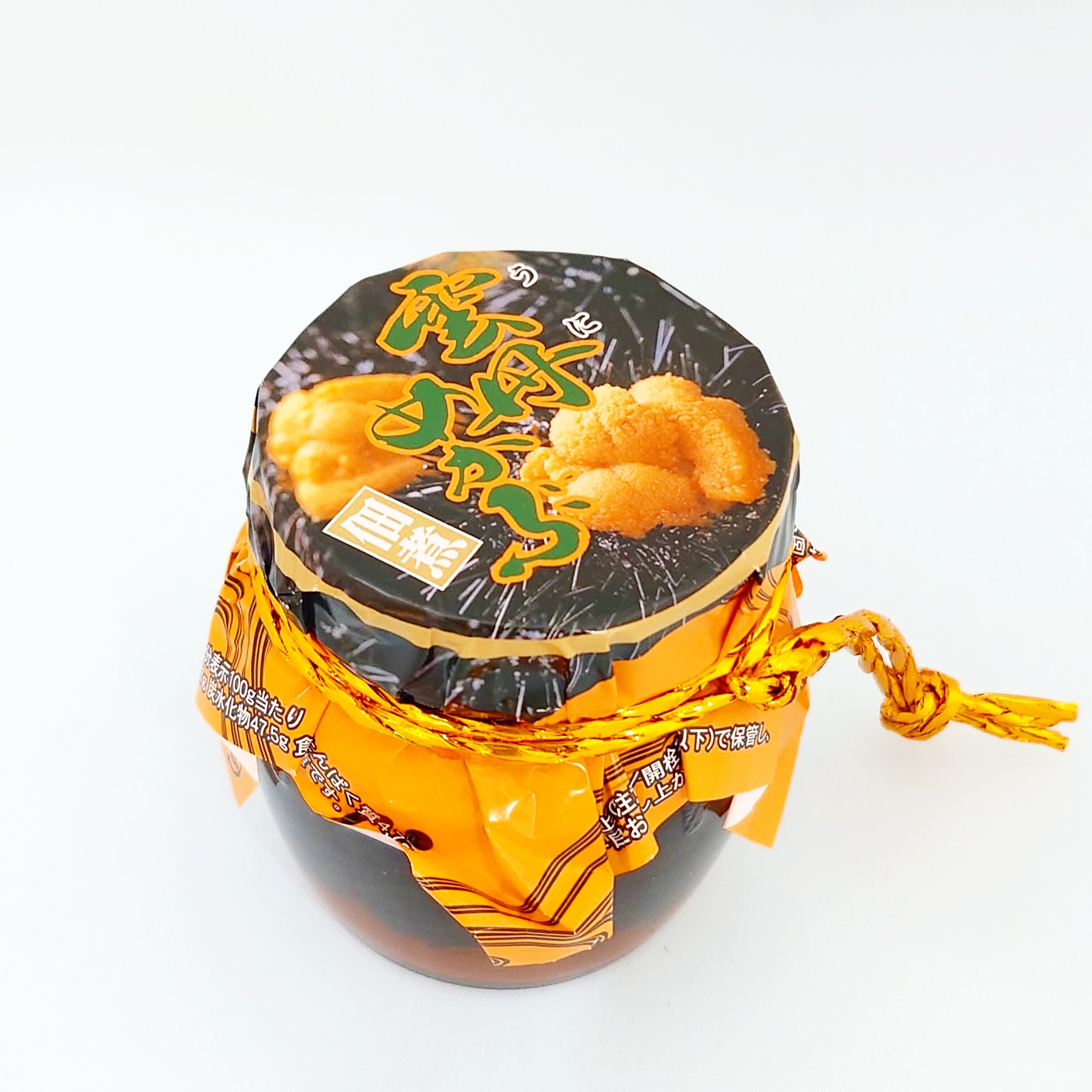 【原材料】しょうゆ加工品(しょうゆ・砂糖・果糖ぶどう糖液糖・発酵調味料・アミノ酸液・食塩)(国内製造)・めかぶ練りうに・昆布エキス/調味料(アミノ酸等)・安定剤(グァー)・増粘剤(キサンタン)・保存料(ソルビン酸K)・着色料(黄4・黄5)・(一部に小麦・卵・大豆を含む)